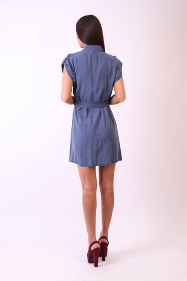 Günlük olarak rahatlıkla kullanabileceğiniz, rahat kesim ipeksi dokulu indigo elbise...