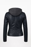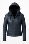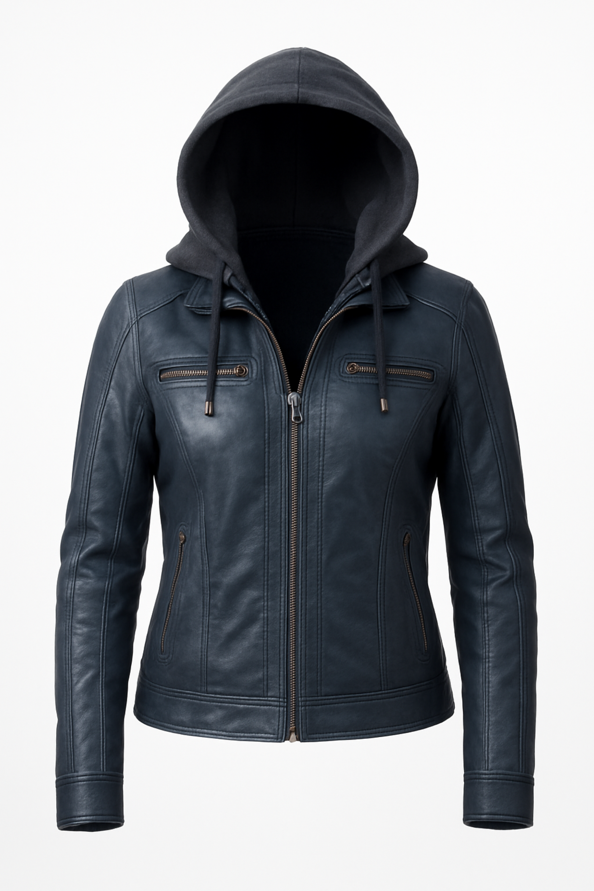 Lacivert Hakiki Deri Çıkarılabilir Kapüşonlu Hakim Yaka Spor Mont